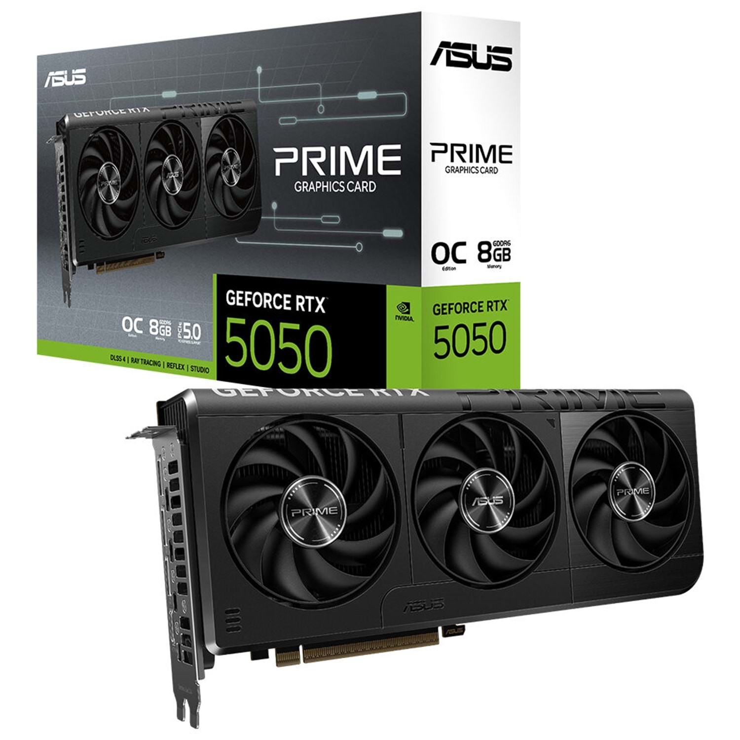 Prime RTX 5050, üç adet eksen teknolojili fanın ekran kartının yan havalandırmasından en iyi şekilde faydalanması ve en uygun termal performans sunması için özenle planlanmış koruma, soğutma bloğu ve ısı borusu düzeniyle 2,5 yuva yer kaplayan tasarıma sahip.