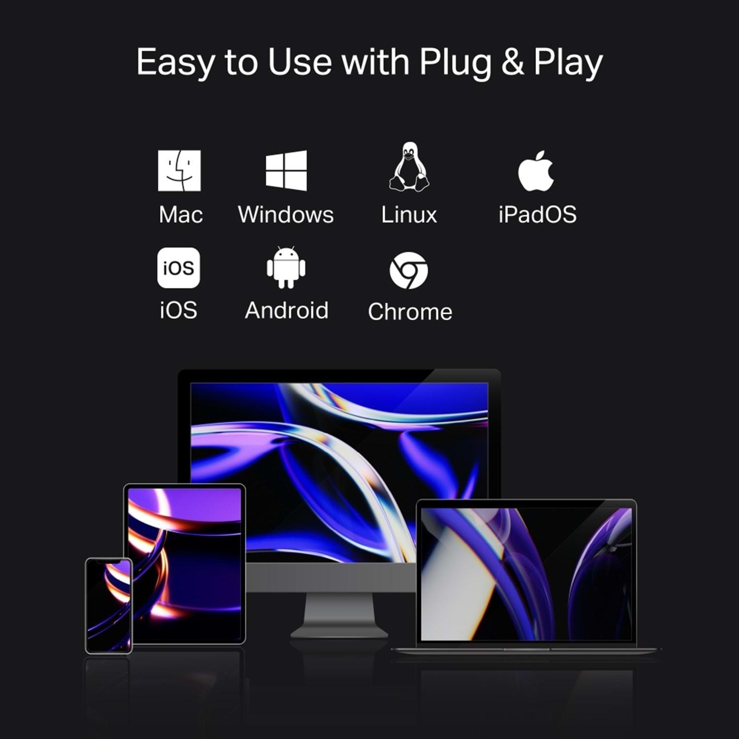Tak ve Kullan Kolaylığı: Mac OS X El Capitan Sürüm 10.11.6 ve sonrası, Windows 11/10/8.1, Linux OS, iPad OS, iOS, Android ve Chrome OS ile sürücü kurulumuna gerek olmadan saniyeler içinde kullanmaya başlayın.