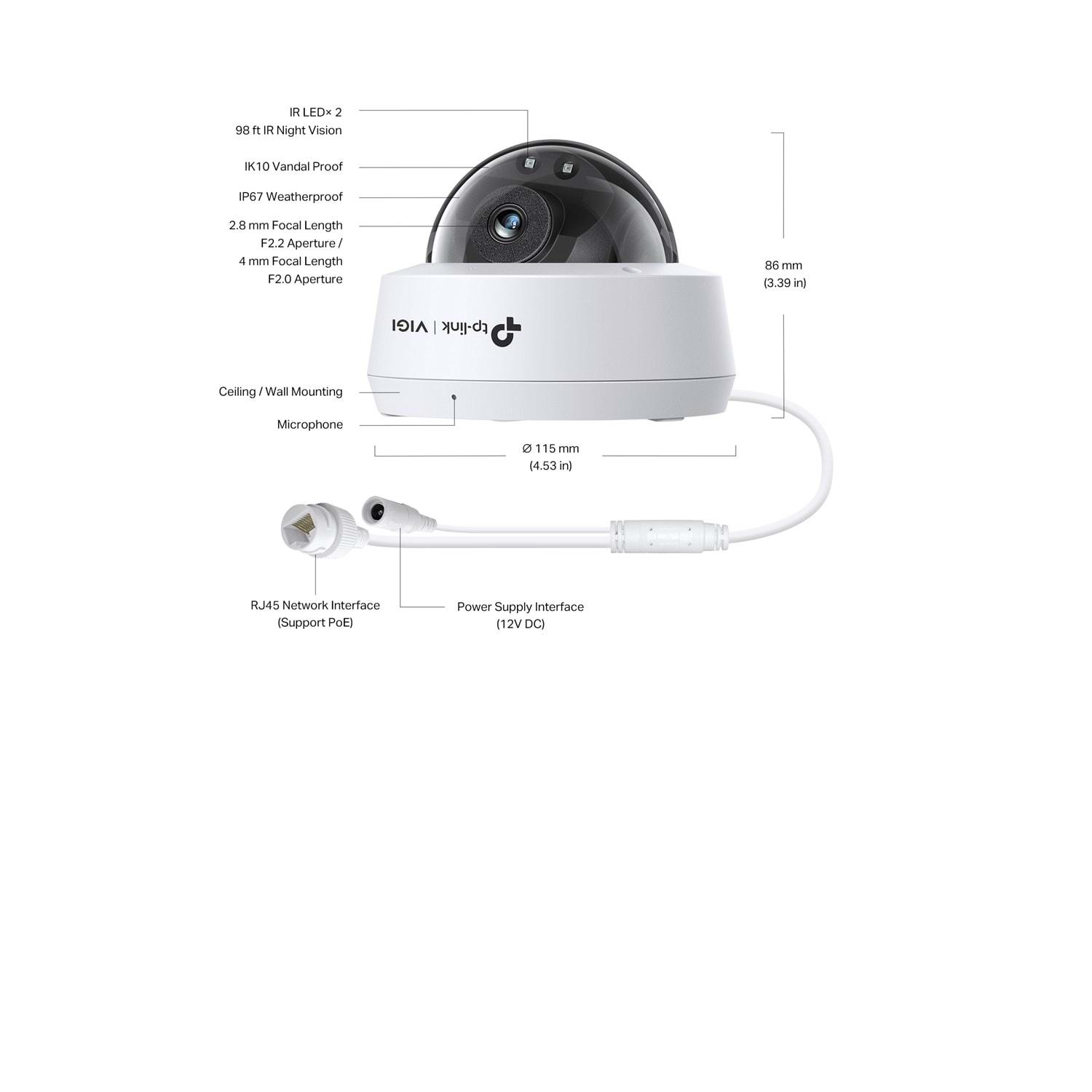 TP-Link VIGI C240I V1.2 2.8mm 4MP IR Dome IP Kamera ( IK10, Dahili Mikrofon )