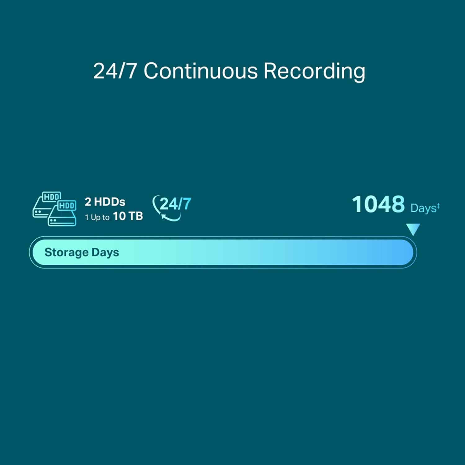 24/7 Sürekli Kayıt: Bağlı kameralardan 20 TB'ye kadar (1048 gün‡) görüntü saklar, verilerinizi hızlı ve pratik bir şekilde erişilebilir kılar.