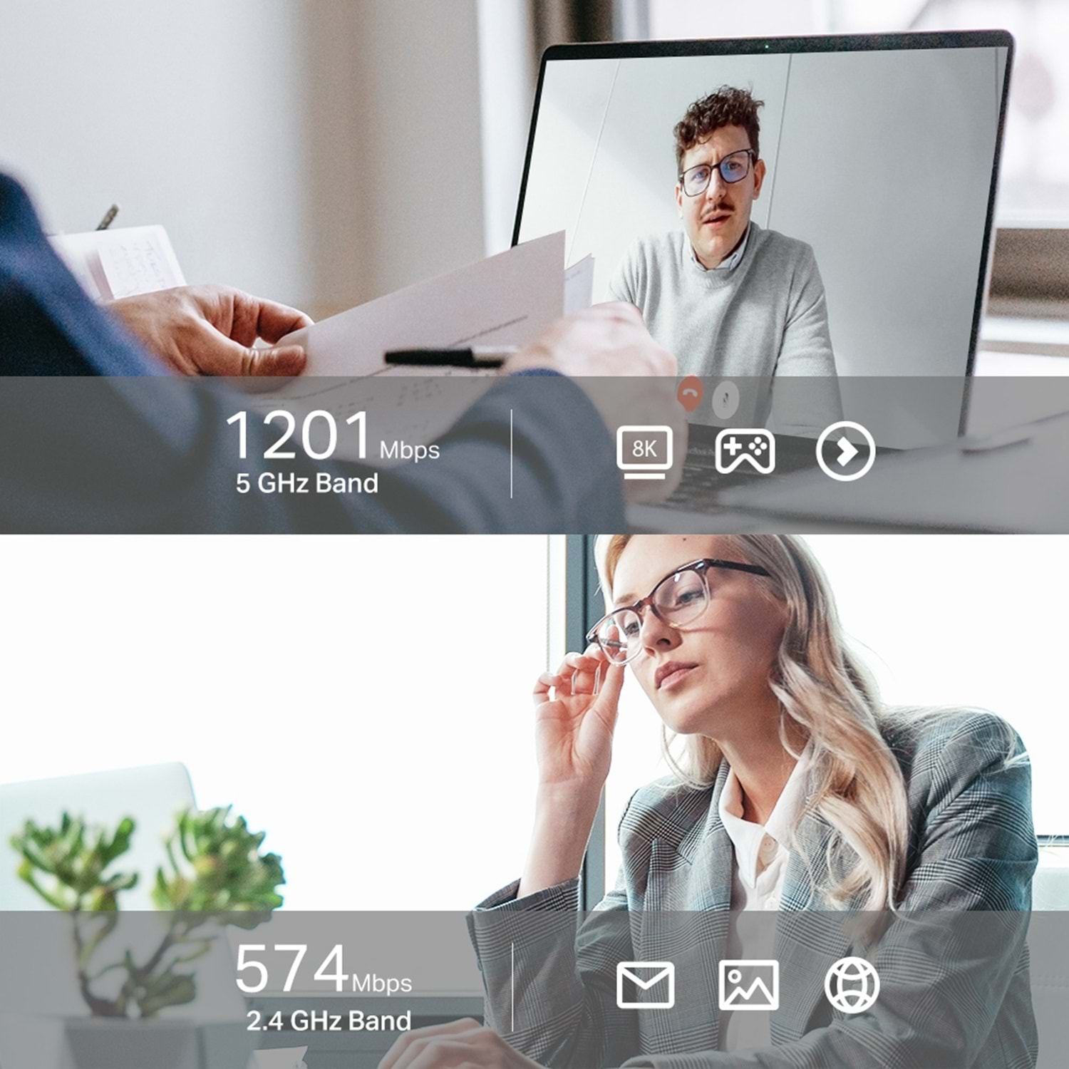 Açıklama Yüksek Hızlı Wi-Fi 6 - 1201 Mbps (5 GHz) + 574 Mbps (2.4 GHz) hızlarla gigabit bariyerini aşar. Çift Bant Kablosuz