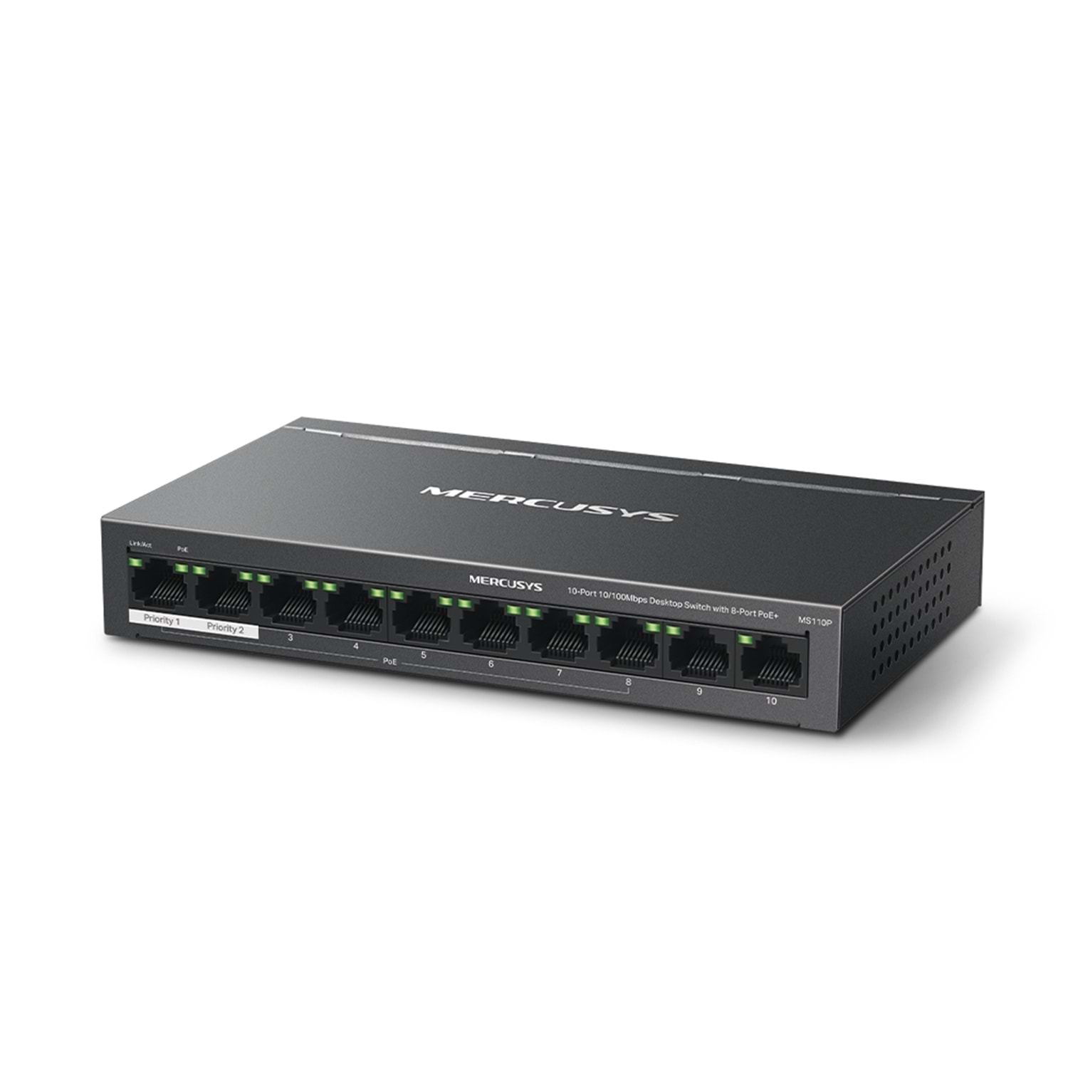 10 Bağlantı Noktası: 8 PoE+ bağlantı noktasına sahip 10 × 10/100 Mbps RJ45 bağlantı noktası.